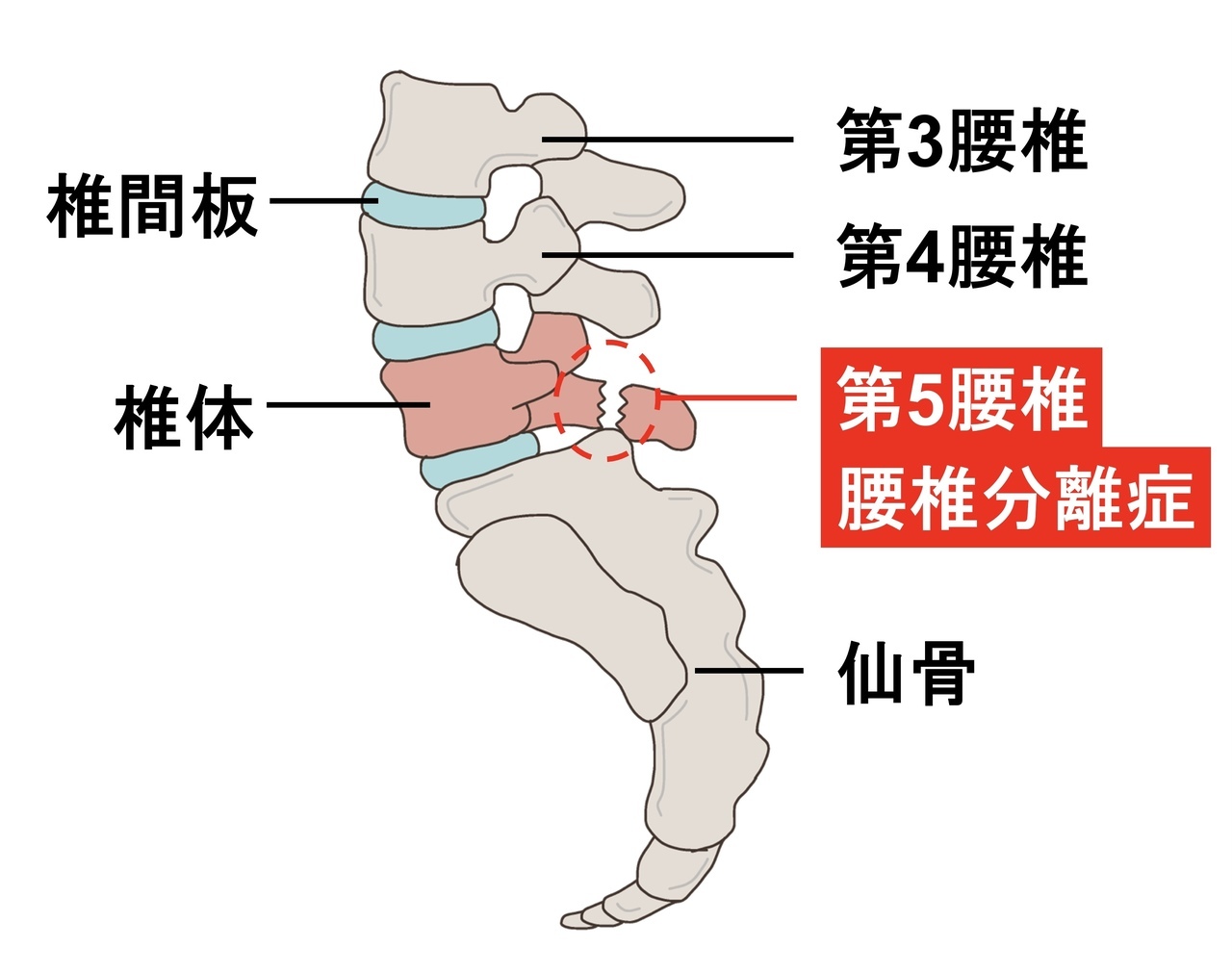 腰椎分離症は主に若年者の新体操やバレエなどの競技で過度な腰の反りを求められることで発症します。腰痛で病院を受診した際に、レントゲンにより発覚するケースもありますが、若い頃に発生した腰椎分離症が完治していないことが考えられます。この場合、腰痛の原因となっている問題は別にありますが、身体の使い方が変わっていなければ同様のストレスが加わり続けているため、椎間関節症などの問題に移行している可能性があります。
